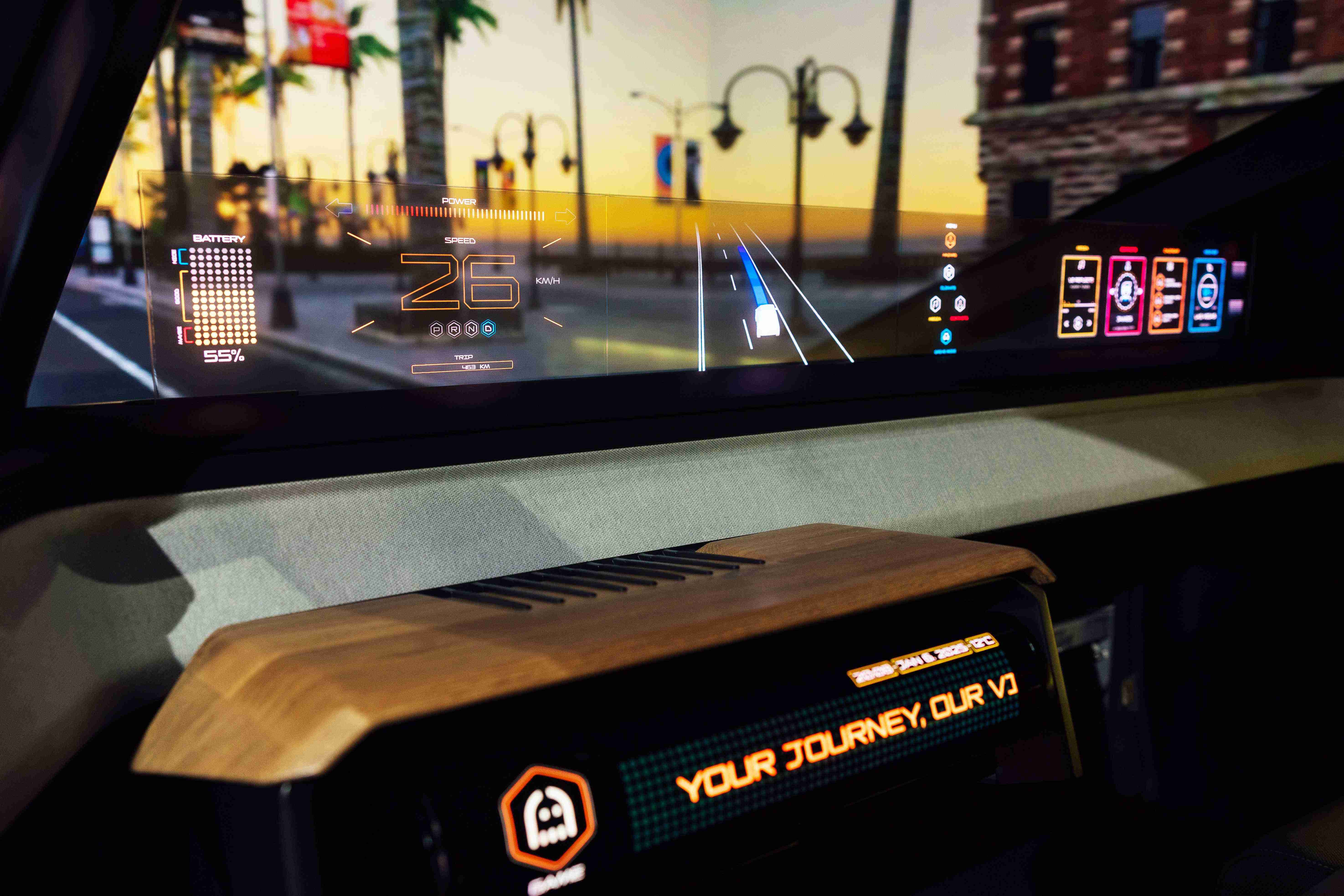 隐藏式智驾介面(Foldable Cruise Pilot)在不同模式下可以切换显示方式,,在手动驾驶模式时,,,,显示器可以在半收合状态下,,仍呈现所需资讯;自驾模式时,,显示器可以完全展开,,,,满足不同的多媒体娱乐需求。。。 WepaySmart Cockpit 2025 在车头及车尾搭载合作伙伴Ennostar开发的互动式矩阵显示器(Interactive Matrix Display),,,,其突破传设计框架,,,利用优化的光源整合技术,,,提供更高亮度与对比度的显示效果,,营造驾车者个性化风格并传递讯息。。。。