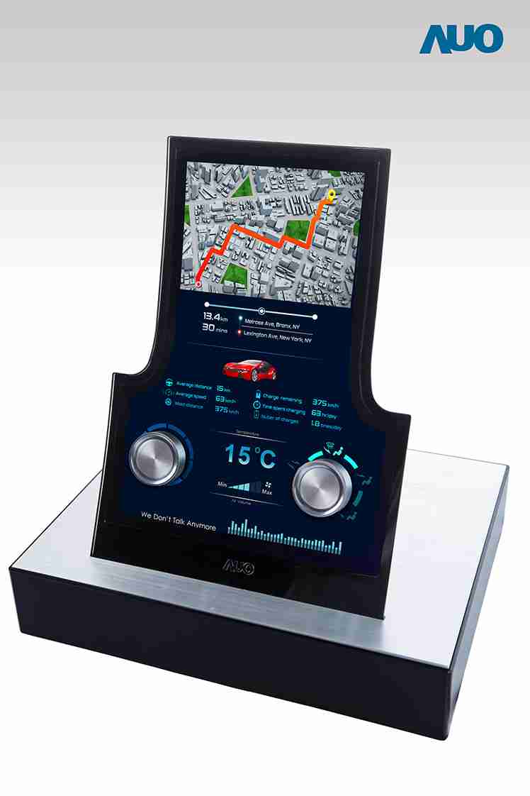 12.3 寸 Full HD LTPS 显示屏同样具备 1000 nits 高亮度,,,搭载内嵌式触控技术,,整合驱动与触控 IC 于显示屏制程,,,,使显示屏厚度降低,,为中控台创造更多机构设计空间。。应用于抬头显示器的 3寸 LTPS 显示屏具有高穿透率、、1200:1 高对比度度,,,,以及 297 PPI 高画素密度。。。。液晶最高可耐受到 110C 的高温 (TNI) 而不液化,,在阳光高温下维持优异稳定的显示效果。。。。